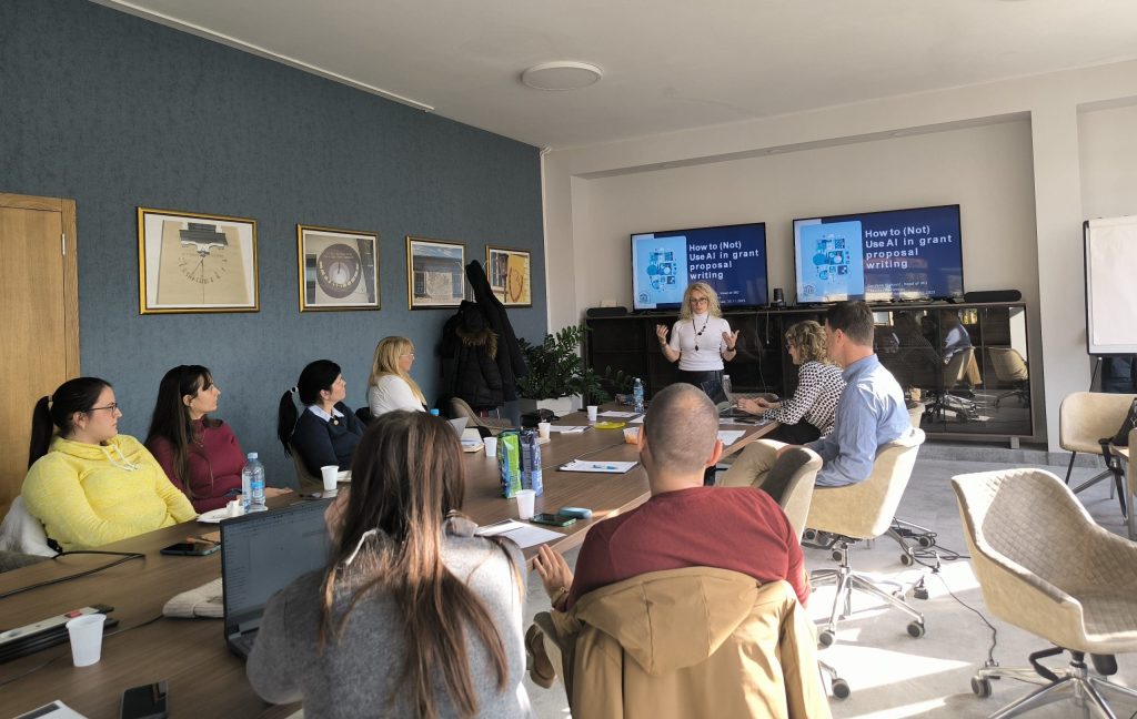 Гордана Влаховић и Војислав Пркосовачки уживо су са учесницима отворили тему вештачке интелигенције – законске регулативе на нивоу ЕУ и Србије, те употребе ВИ у писању пројеката – како ВИ може да помогне у тражењу позива и структурирању пројектних идеја, али и зашто је важно држати се принципа етичности.