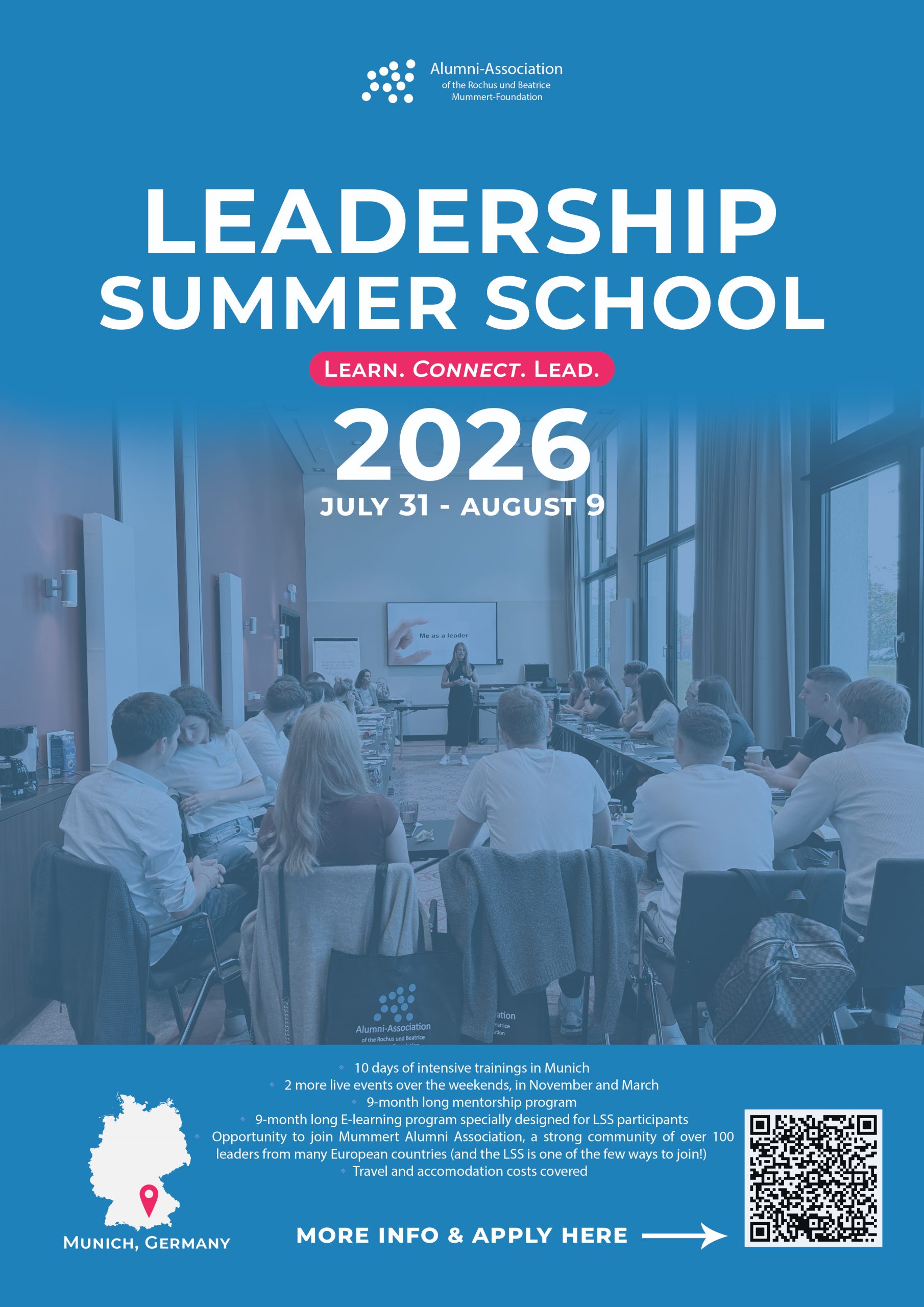 Leadership Summer School 2026 (LSS) је међународни деветомесечни програм који окупља 50 младих лидера (21–26) из Централне, Источне и Југоисточне Европе.